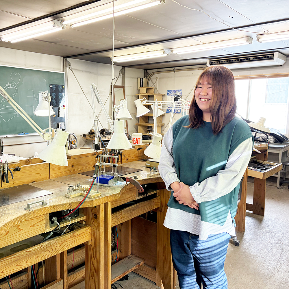 bisenでは木工・金工・ジュエリー・陶芸の4つの分野を1年生のうちに学ぶことができるのが利点。自分が一番魅力を感じるものは何なのか、考えながら知識を得ることができます。実際にものづくりをしている方々と同じ道具や方法で学ぶことができ、取ることのできる資格が多いのも魅力です。また、考えたデザインを形にするためのアドバイスや、作品を通して伝えたいことを明確にする手立てを教えてもらえ、スキルアップに繋がります。使った時に、いろいろな感情がうまれるようなものづくりができる人になりたいと思っています。