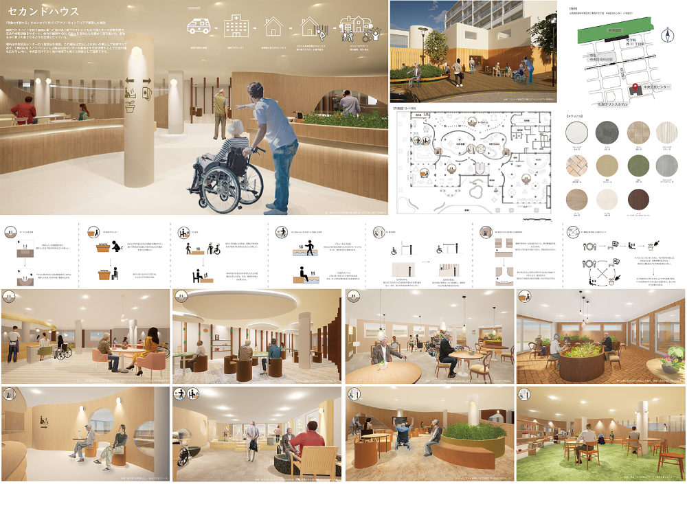 バリアフリーをインテリアで表現し、病気や怪我をした人が自宅に戻った後の活動をサポートする施設。
