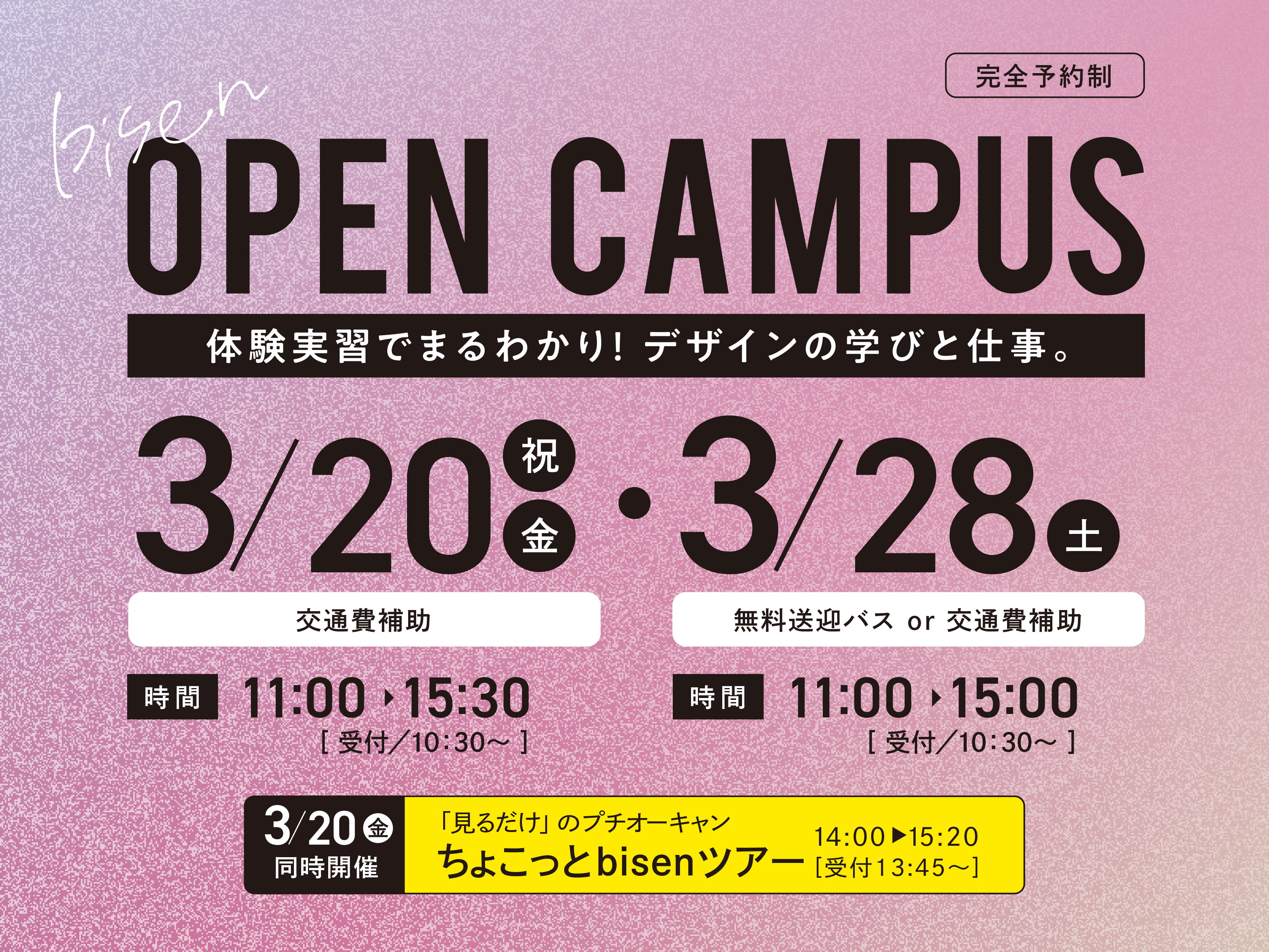 3/20・28のオープンキャンパス【無料送迎バスor交通費補助】